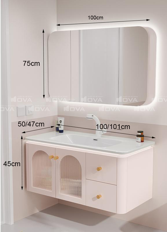 Kích thước tủ dưới: 80x47cm, 100x47cm