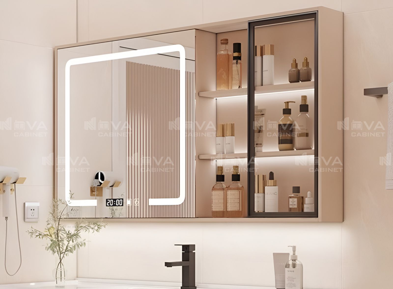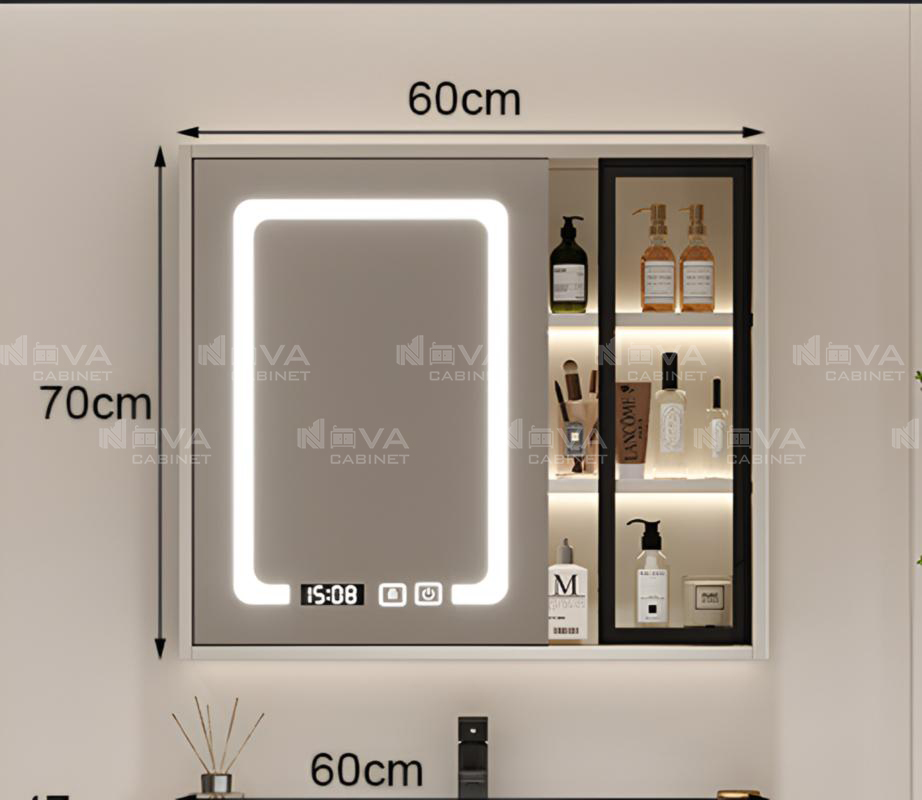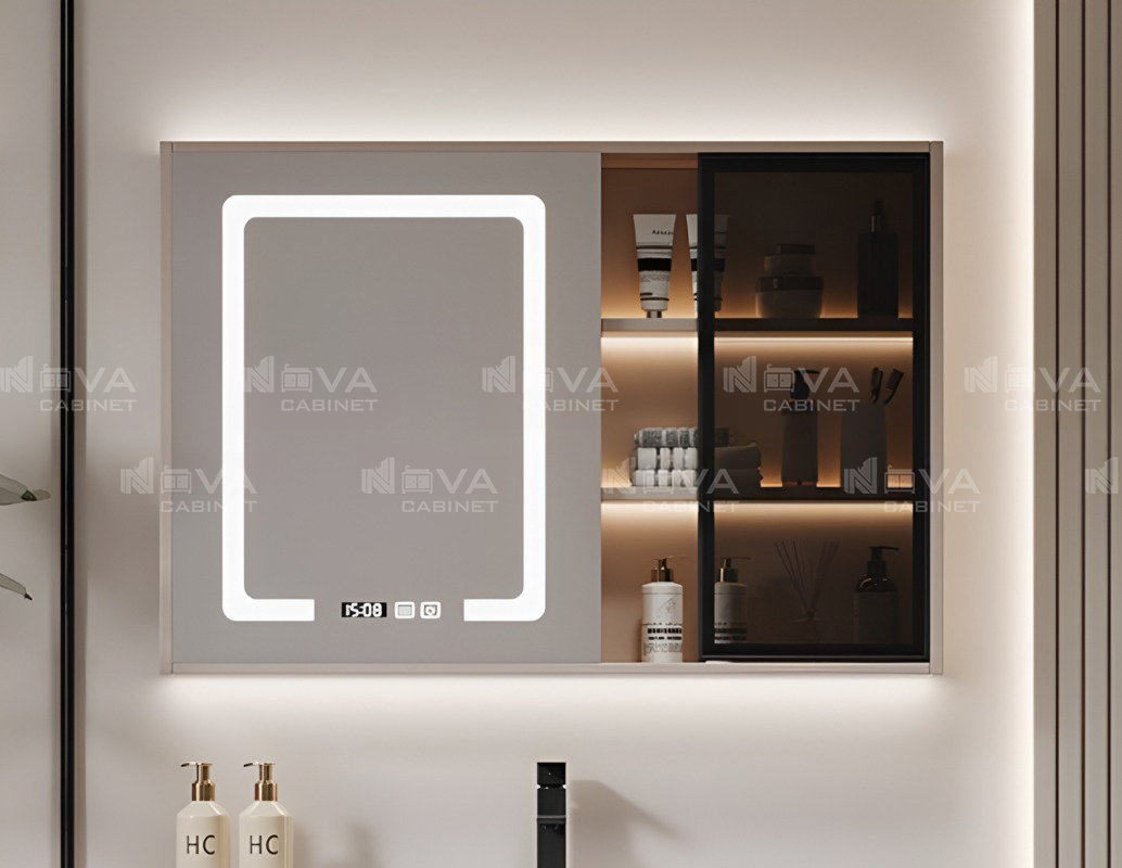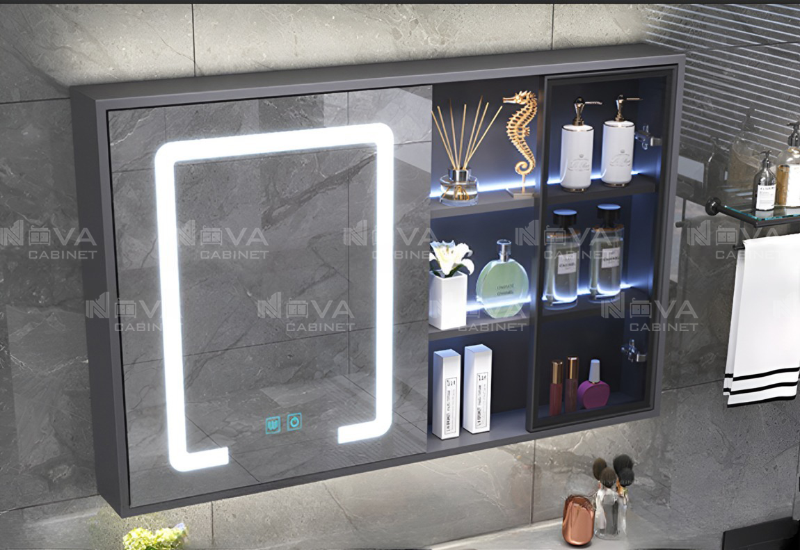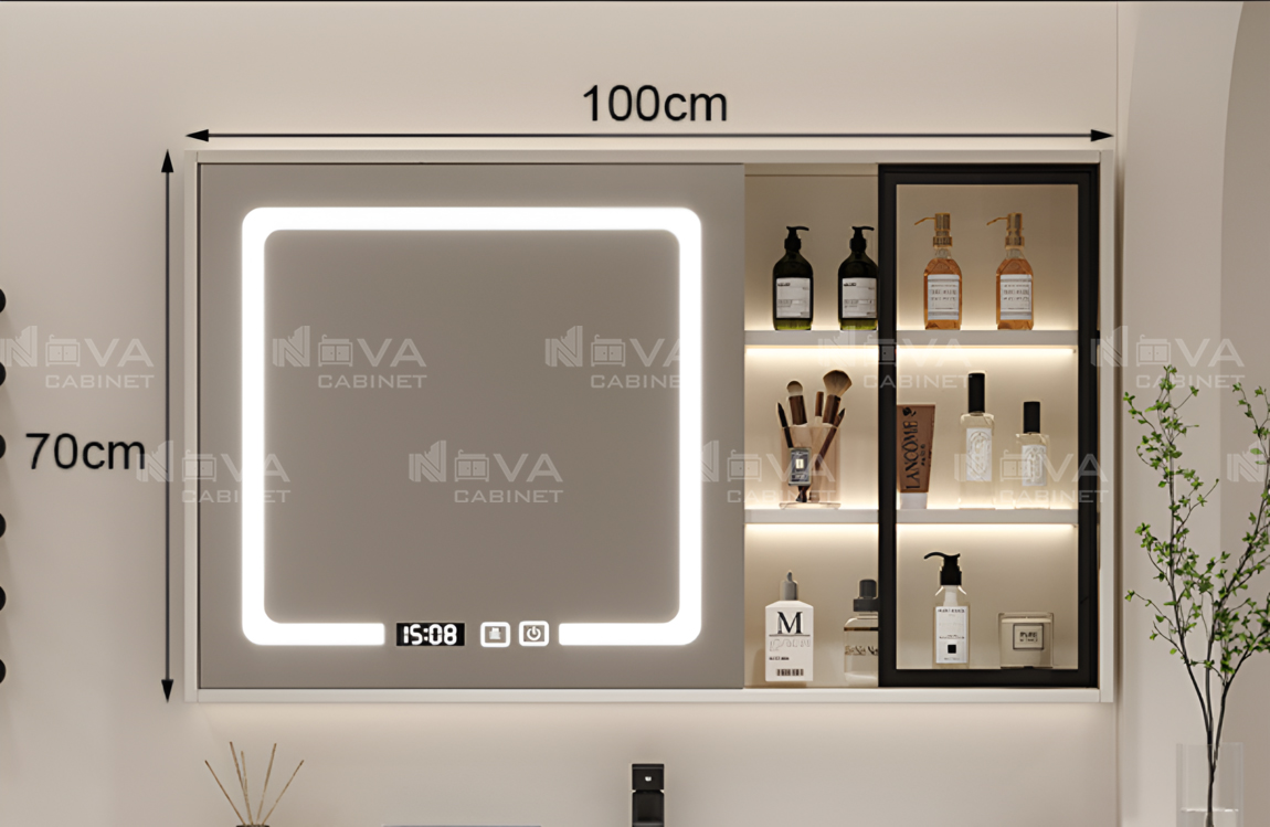 Tủ gương chất liệu cao cấp phủ gương led full mặt 2 cánh