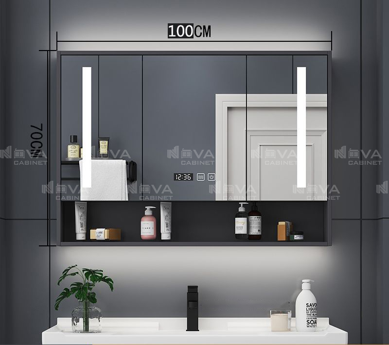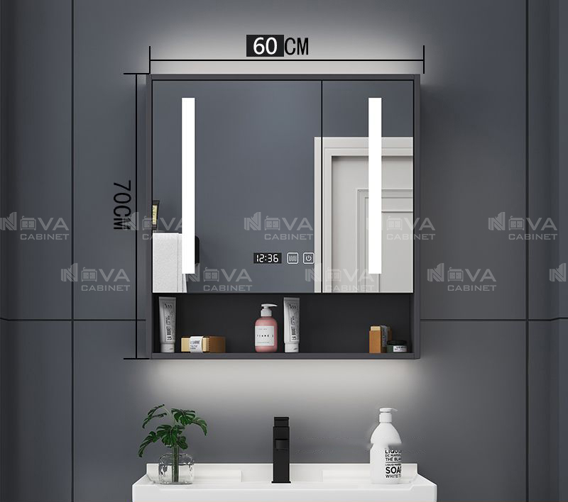 Tủ gương chất liệu cao cấp phủ gương led full mặt 2 cánh